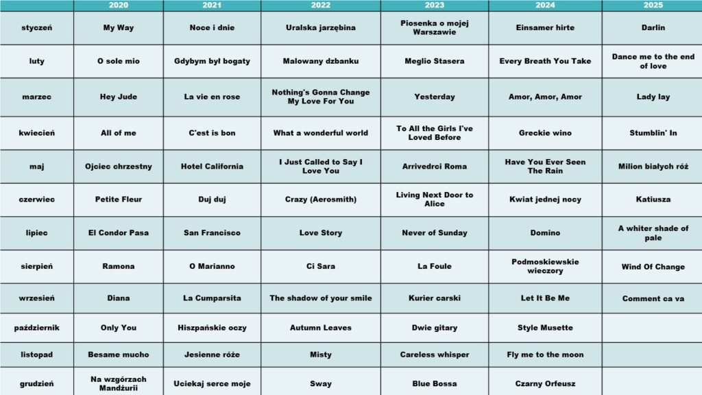 - znany przebój w dwóch wersjach: łatwiejszej i trudniejszej
